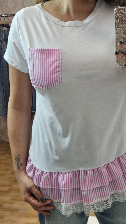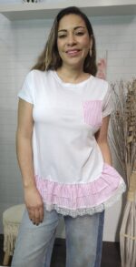 Añade un toque de ternura y frescura a tu clóset con nuestra blusa Pink. Esta prenda redefine la clásica camiseta blanca con detalles femeninos que la hacen destacar.