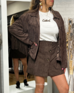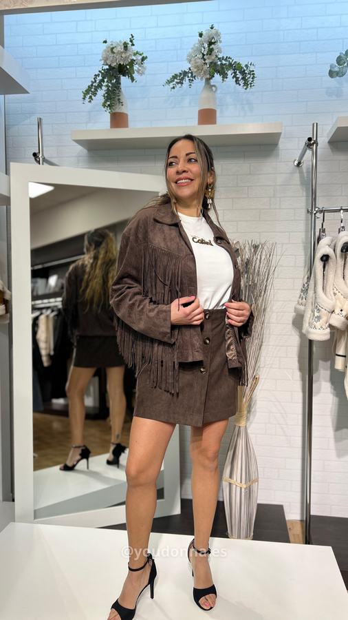 Dale un toque audaz y retro a tu look con nuestra Chaqueta vaquera. Esta pieza de antelina combina la esencia del estilo western con un corte moderno y femenino, ideal para crear estilismos con mucha personalidad.