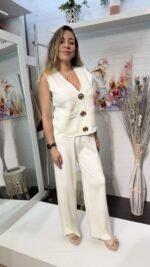 Déjate conquistar por la dulzura de nuestro Conjunto, este ser de dos piezas en un delicado tono blanco roto es la definición de estilo effortless para esta temporada.