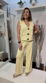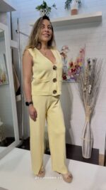 Déjate conquistar por la dulzura de nuestro Conjunto, este ser de dos piezas en un delicado tono amarillo pastel es la definición de estilo effortless para esta temporada.