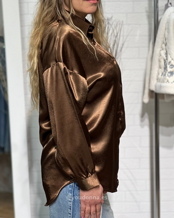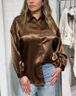 Añade un toque de lujo a tu armario con nuestra blusa Moka. Confeccionada en un tejido satinado con brillo sutil y caída impecable.