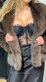 Seducción y estructura en una sola pieza. Este corset tipo bustier destaca por su encaje floral premium y delicados acabados de pestañas en el escote.