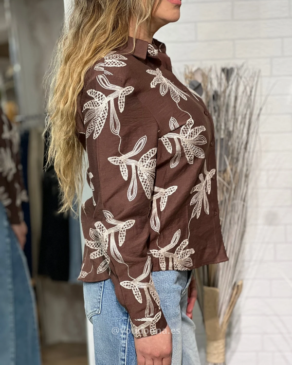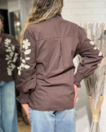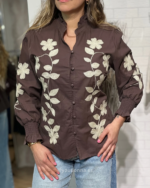 Nuestra camisa Nativa combina la calidez del chocolate con bordados que son pura delicadeza.