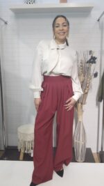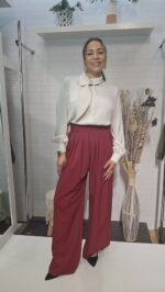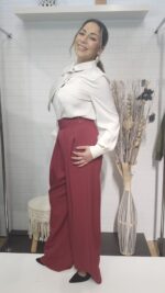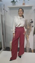 Elegancia y sofisticación en cada paso. Nuestro Pantalón imperial en color vino es la pieza clave para un look de invitada inolvidable.