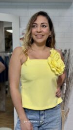 Lleva la luz del sol contigo. Este top en color amarillo vibrante es la pieza clave para iluminar cualquier look. Con un diseño minimalista y un ajuste favorecedor, es tan versátil como un día de verano.